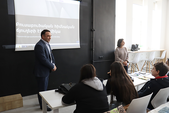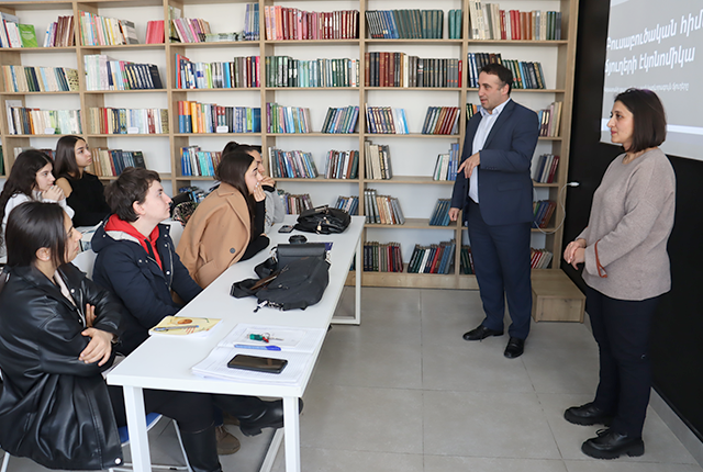 Ագրարային էկոնոմիկայի ամբիոնի դասախոս Կարինե Մնացականյանը «Բուսաբուծական հիմնական ճյուղերի էկոնոմիկա» դասընթացի շրջանակում բաց դաս վարելու համար հրավիրել էր ագրարային ոլորտի հայտնի գործարար, Արգրեյն ՍՊԸ տնօրեն, մարկետոլոգ, ֆերմեր Հարություն Մնացականյանին։ Երկրորդ կուրսեցիների հետ հանդիպումը, ինչպես եւ սպասվում էր, ձգվեց նախատեսված ժամից ավելի։