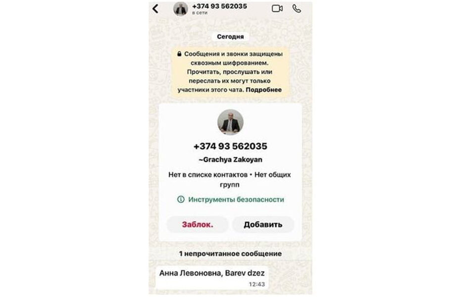 От имени ректора НАУА Грачья Закояна в мессенджере WhatsApp создан поддельный аккаунт. Просим наших коллег не реагировать на возможные сообщения с этого аккаунта, в особенности воздержаться от передачи какой-либо информации или данных.