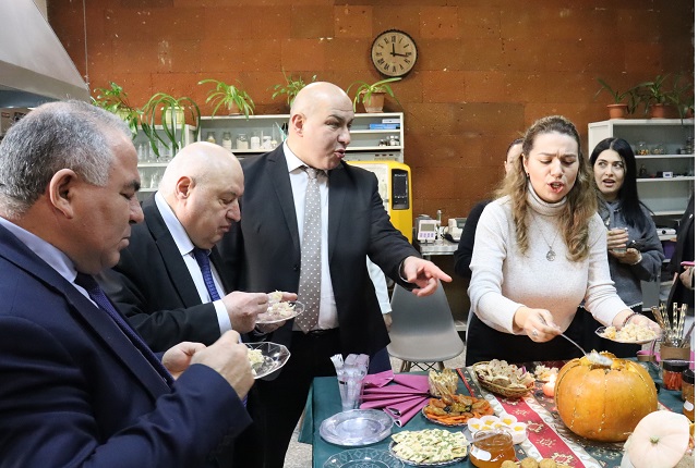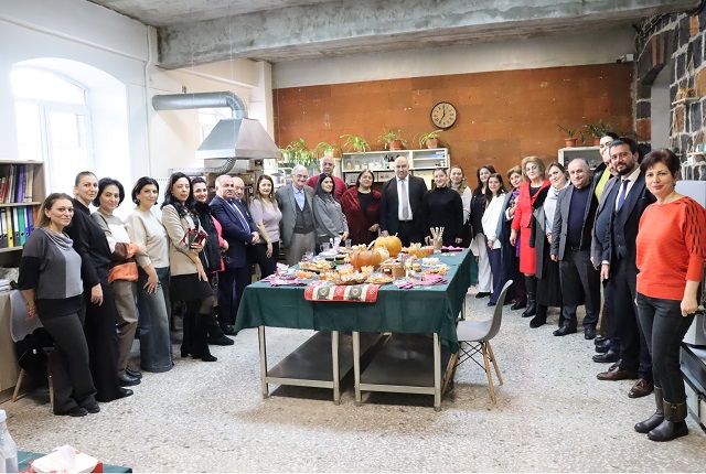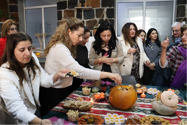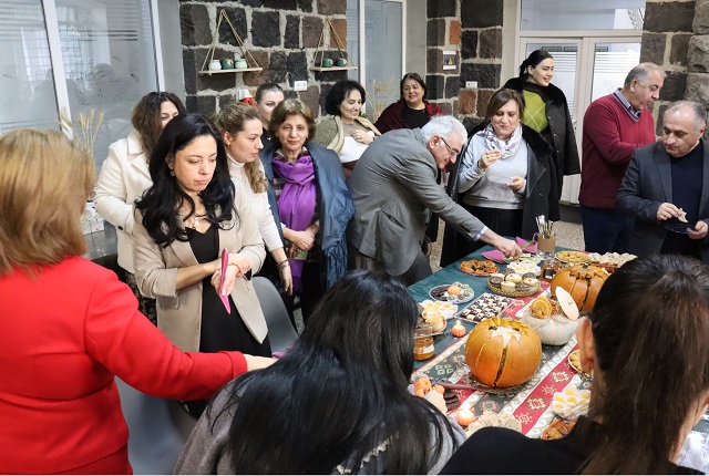 Համակրելի կանանց աստղաբույլը որոշեց ՀԱԱՀ Սննդագիտության եւ կենսատեխնոլոգիաների գիտահետազոտական ինստիտուտի Բուսական ծագման մթերքի եւ հումքի վերամշակման տեխնոլոգիայի բաժնի այս տարվա հաշվետվությունը համեղ թեյախմությամբ ներկայացնել: Մատուցումը ճաշակավոր էր, գեղեցիկ: Համերը՝ նոր, երբեմն անսպասելի, երբեմն՝ երեւակայությունից դուրս: Էլ դդմի կորիզով՝ առանց շաքարի անույշ խյուս (ավելորդ չշեշտենք, թե որքան առողջարար է), էլ դդմաչրով հաց, էլ դդմով շոկոլադային հրուշակեղեն, էլ հազրեվարդով չորահաց, հապալասային «երեսառածություն», որը հիշենք: