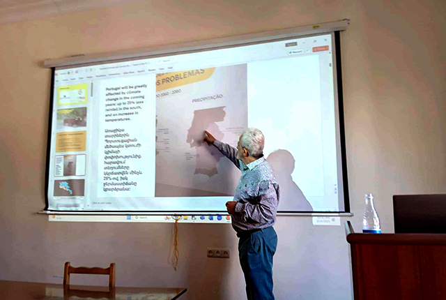 На факультете ветеринарной медицины и животноводства НАУА состоялась лекция профессора Политехнического института г. Бежа, приглашенного исследователя университета Порто Аугусто Ланка. Лекция была посвящена проблемам кормления жвачных животных и устойчивого пастбищеводства. Профессор А. Ланка рассказал о последствиях климатических изменений (повышение температуры, изменение относительной влажности, нерегулярность выпадения осадков) и их непосредственном и косвенном влиянии на состояние пастбищ и на животноводство. Он также остановился на роли богатых белками кормовых культур в здоровом питании. Профессор подчеркнул важность естественного поведения животных на пастбище и его влияние на их здоровье, продуктивность, на качество молока и мяса. Он перечислил принципы планирования и создания новых пастбищ, подчеркнув важность наличия воды и технических средств. В заключение лекции профессор ответил на вопросы студентов и принял участие в профессиональной дискуссии.