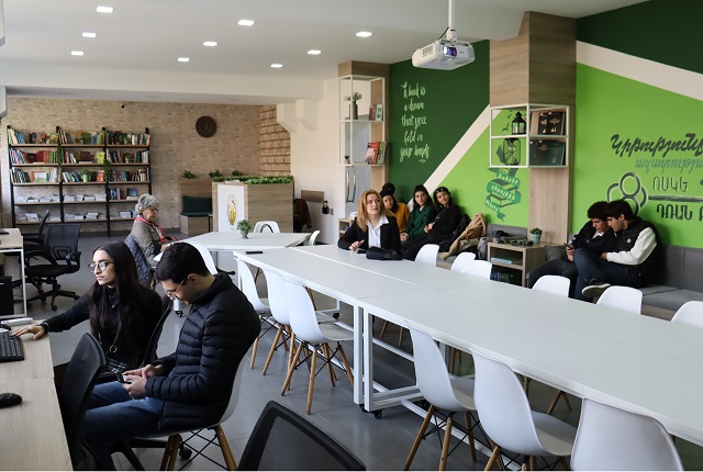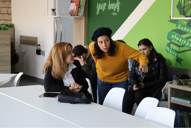 Значит, обязательно надо присутствовать на этом занятии. Вскоре стало ясно, что ничего необычного не происходит. Просто ассистент кафедры армянского и иностранных языков Нарине Акопян после текстовой работы предлагает студентам изучить и представить доклады на профессиональные темы на английском языке, сопроводив их видеоматериалом.